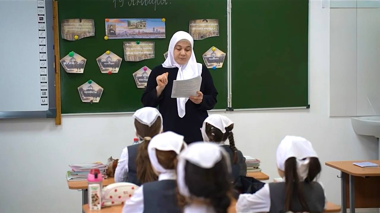 Перед началом урока проводится торжественная линейка с поднятием флагов Российской Федерации и Чеченской Республики, а также прослушивание и исполнение гимнов.