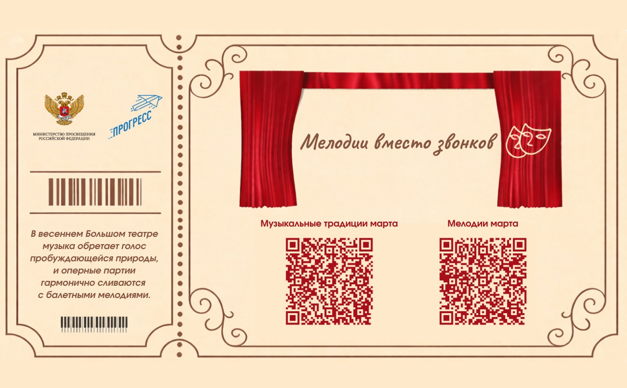 Также в марте для учеников будут звучать мелодии, исполненные победителями Всероссийского конкурса инструментального и изобразительного искусства «Мелодии вместо звонков» 2025 года.