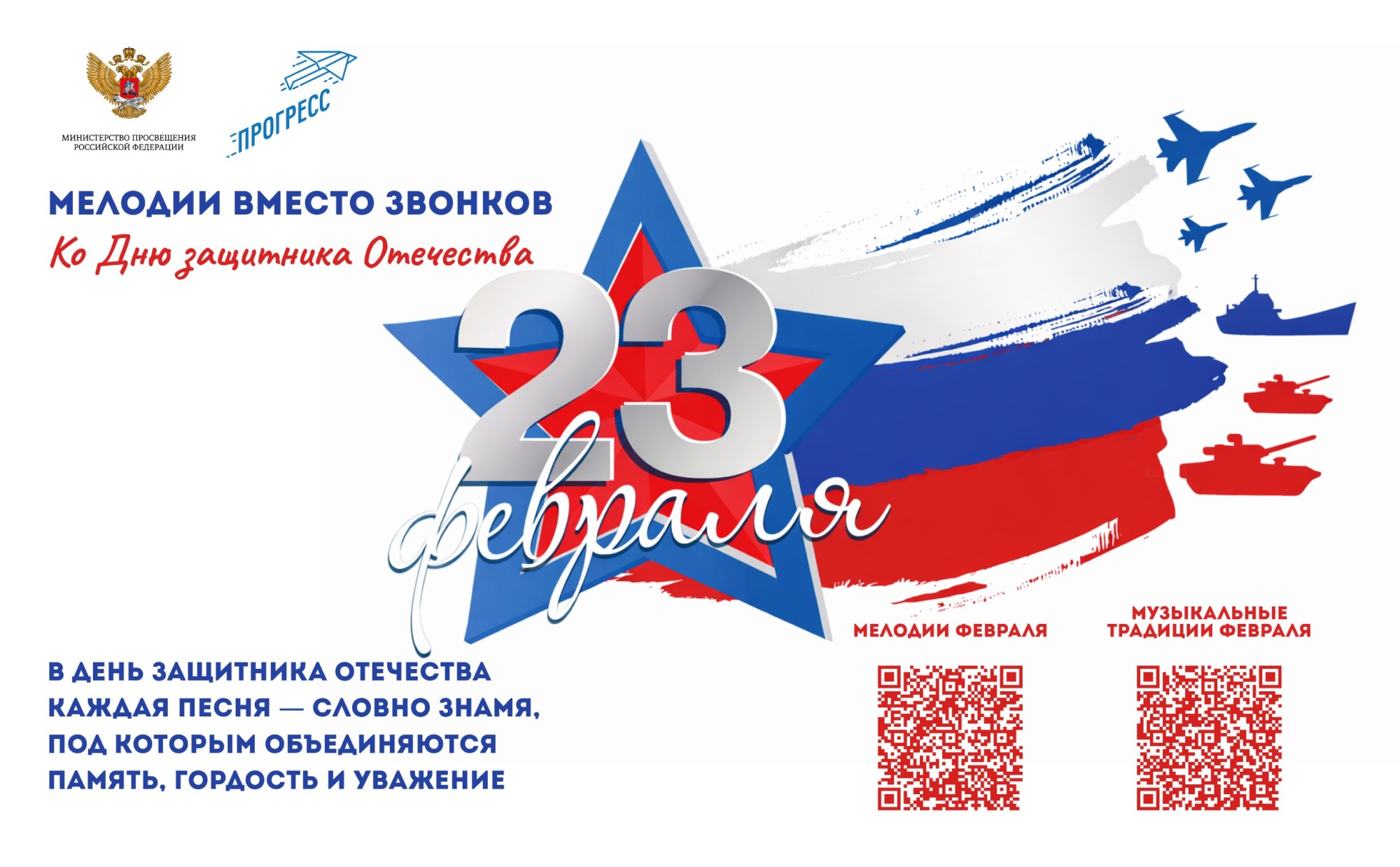 В феврале в рамках Всероссийского проекта «Мелодии вместо звонков» стандартные звонки в школах заменят музыкальные композиции, посвященные Дню защитника Отечества.